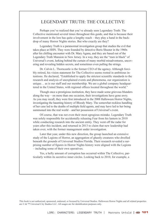 The first page of our Legendary Truth entry in Horrors Untold