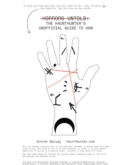 This is part three of an ongoing series about Horrors Untold, the HHN guidebook/immersive horror mystery. You can read samples and buy your copy here or jump back to the table of contents here.